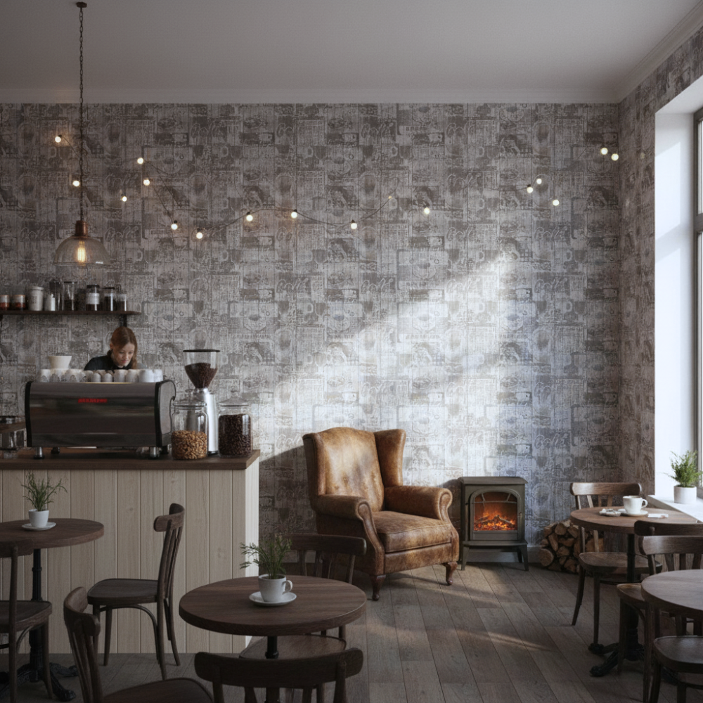 Papel de Parede Alto Relevo Cafeteria Texturizado - PP322