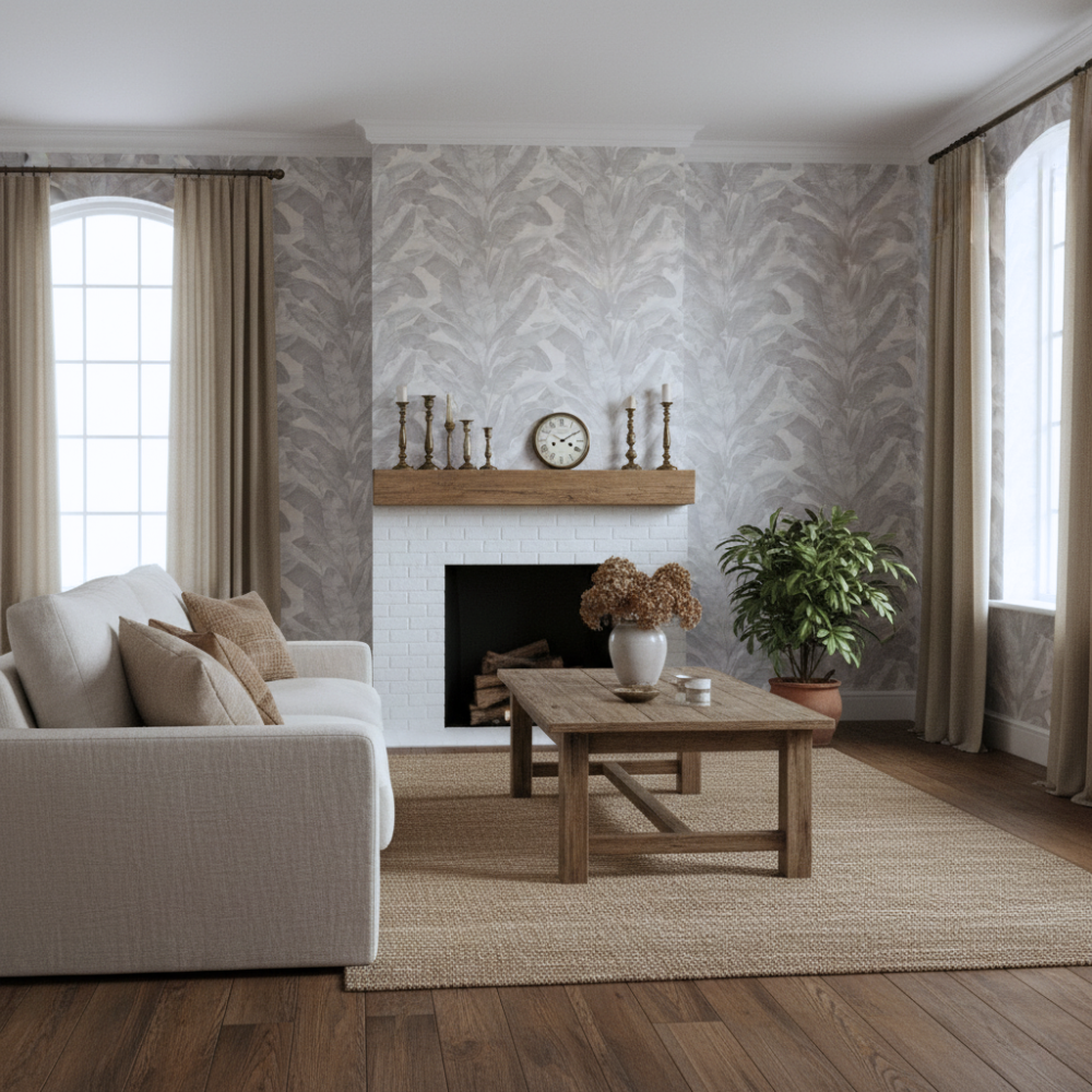 Papel de Parede Alto Relevo Folhas Floral Texturizado - PP315