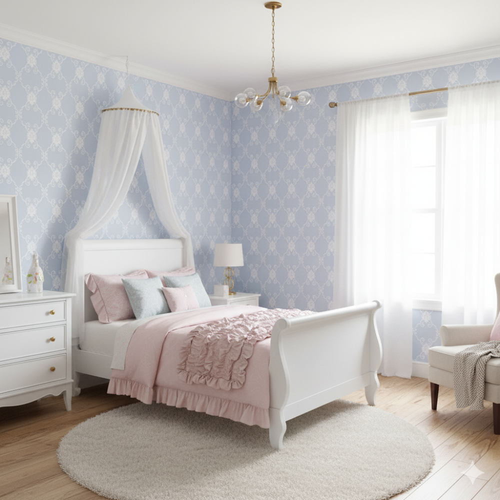 Papel de Parede Texturizado Arabesco Clássico Floral Azul - PP443-1